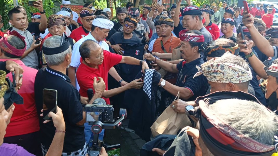 SINGARAJA, The East Indonesia – Bupati Buleleng I Nyoman Sutjidra mendampingi Gubernur Bali Wayan Koster menyerahkan set seragam kepada pecalang di empat belas banjar adat lingkup Desa Adat Buleleng. Bantuan seragam ini menurutnya akan mendorong semangat untuk melakukan pengamanan di wilayah desa adat.