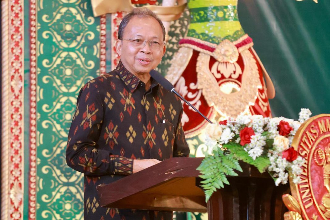 DENPASAR , The East Indonesia — Gubernur Bali Wayan Koster menghadiri pelantikan Rektor Universitas Mahasaraswati Denpasar, I Ketut Sukewati Lanang Putra Perbawa, di Auditorium Saraswati Universitas Mahasaraswati Denpasar, Sabtu (21/2). Dalam kesempatan tersebut, Gubernur Koster membuka peluang kolaborasi riset antara Pemerintah Provinsi Bali dan perguruan tinggi se-Bali guna mendukung pembangunan daerah berbasis penelitian.
