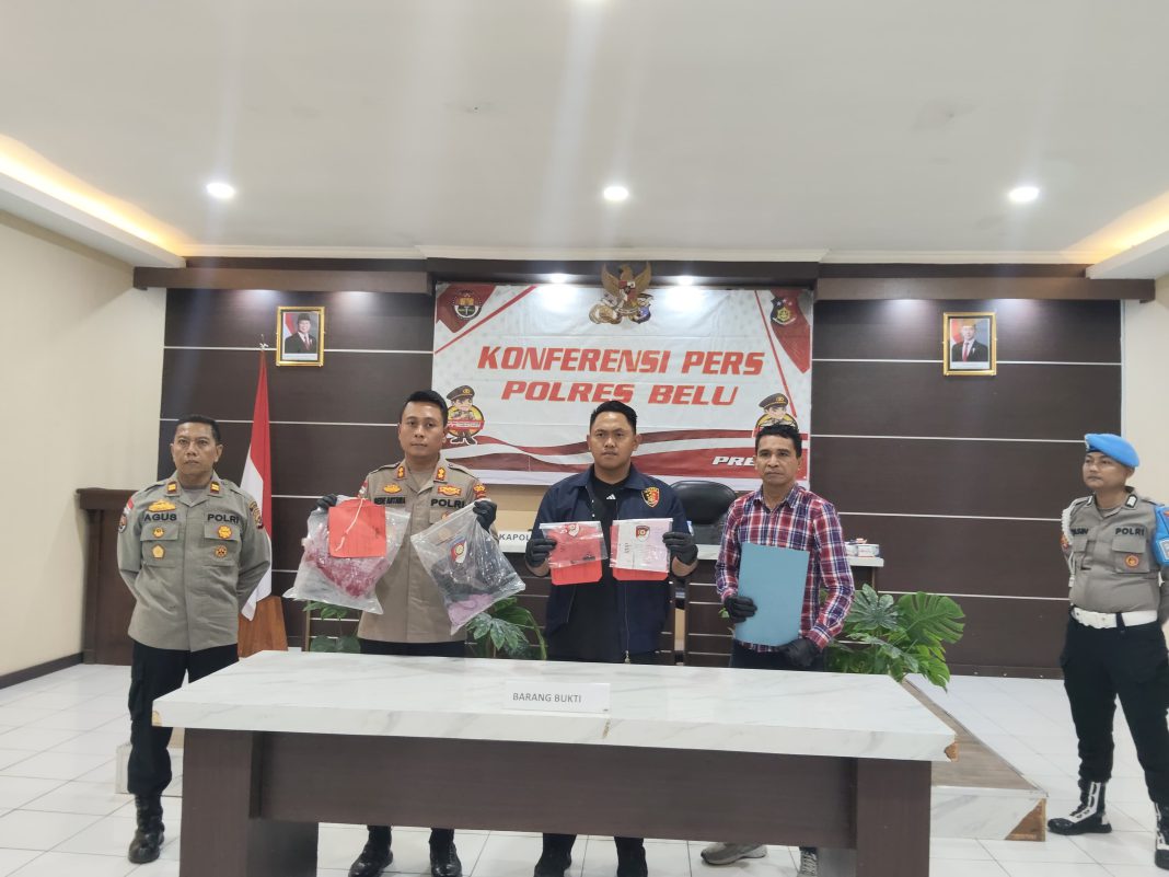 Konferensi pers yang digelar di Aula Wira Satya Lantai 2 Polres Belu ini dipimpin langsung oleh Kapolres Belu, AKBP I Gede Eka Putra Astawa, S.H.,S.I.K didampingi Kasat Reskrim, AKP Rachmat Hidayat S.Tr.K., S.I.K., Kasi Humas, IPTU Agus Haryono, S.H, Kanit PPA, IPDA Yeremias Mengi, Kasi Propam, IPDA Triono dan Kanit Pidum Sat Reskrim, IPDA Alfathan Lexem, S.Tr.K, pada Selasa, 24 Februari 2026.