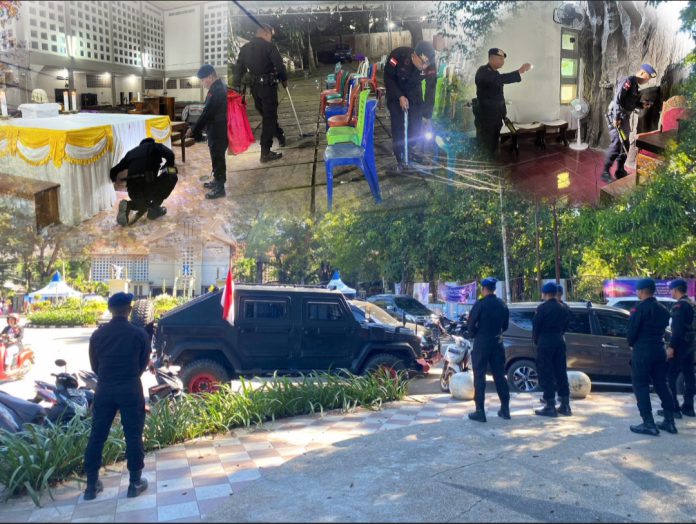Unit Jibom (Penjinak Bom) yang dilengkapi dengan kendaraan taktis Tamborra, mobil komando J-Force, serta peralatan khusus seperti Metal Detector dan Kaca Mirror, melakukan penyisiran ketat di empat lokasi utama yakni Gereja Katolik Katedral St. Maria Imaculata, Gereja Protestan Polycarpus, Gereja Katolik St. Petrus Tukuneno dan Gereja Protestan Anugerah.