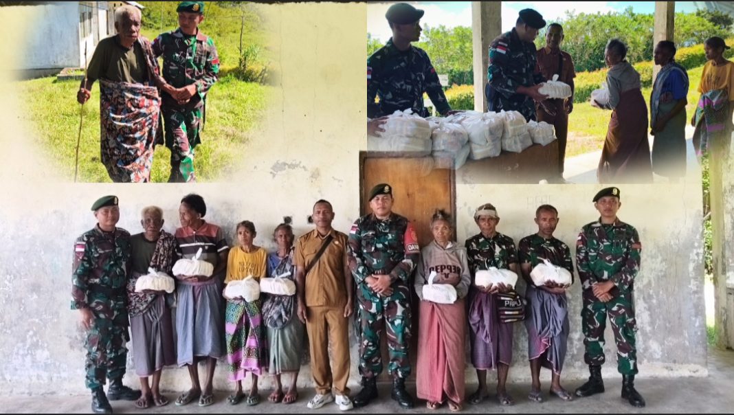 Melalui Pos Fohuk, Satgas dari Yonarmed 12/AY/2/2 Kostrad menggelar aksi sosial berbagi rezeki di Dusun Piebulak, Desa Loonuna, Kecamatan Lamaknen Selatan, Minggu (05/04/2026).