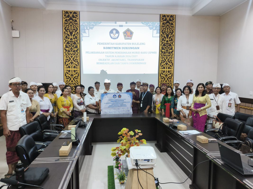 SINGARAJA, The East Indonesia – Pemerintah Kabupaten Buleleng melalui Dinas Pendidikan, Pemuda dan Olahraga (Disdikpora) terus memperkuat komitmen dalam menghadirkan sistem penerimaan peserta didik yang adil dan transparan. Hal tersebut ditegaskan dalam kegiatan Sosialisasi Sistem Penerimaan Murid Baru (SPMB) Tahun Ajaran 2026/2027 yang dirangkaikan dengan penandatanganan komitmen bersama lintas sektor, bertempat di Ruang Rapat Bappeda Kabupaten Buleleng, Rabu (16/4).