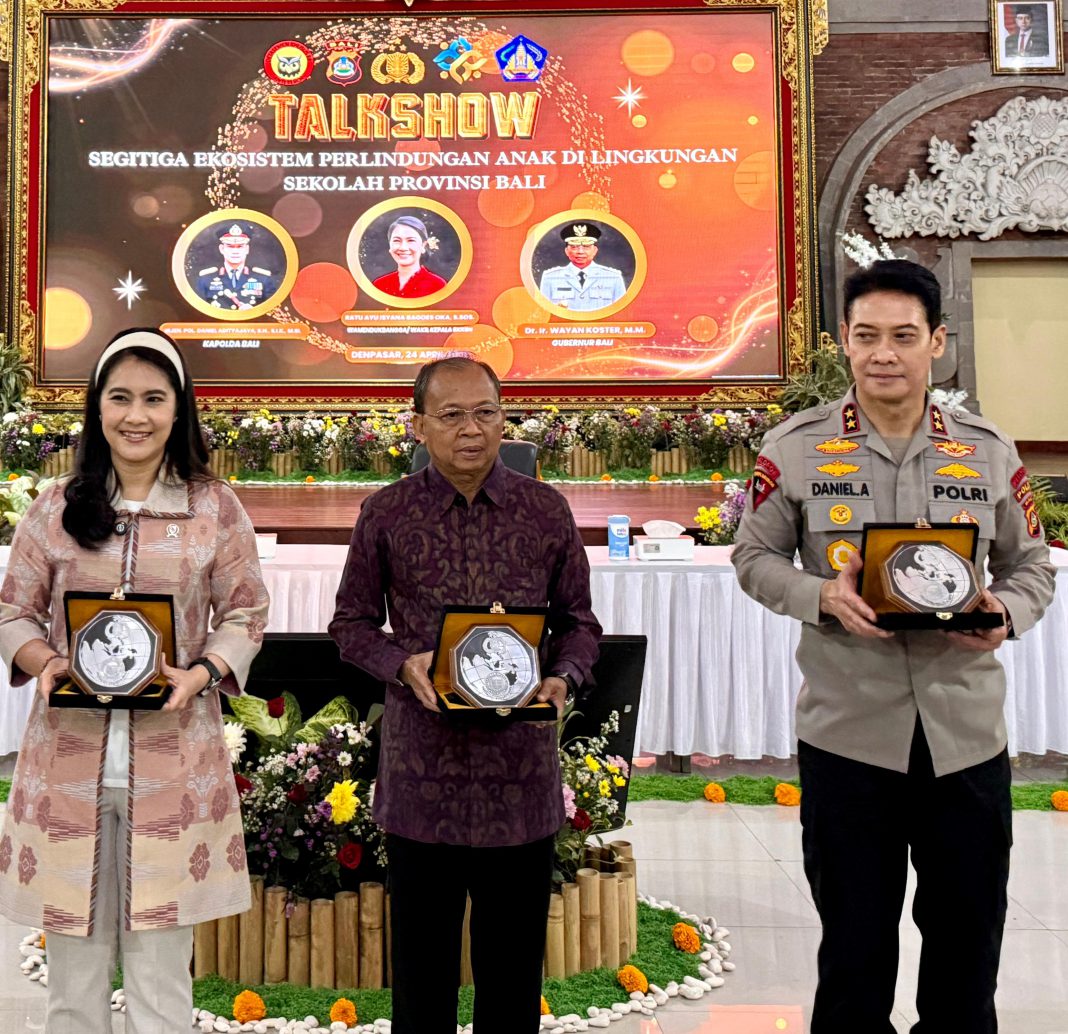 DENPASAR, The East Indonesia – Gubernur Bali Wayan Koster menaruh perhatian serius pada upaya pencegahan terjadinya tindak kekerasan pada anak. Ia mendukung penguatan segitiga ekosistem yaitu keluarga, sekolah dan masyarakat dalam upaya menangkal terjadinya tindak kekerasan pada anak. Hal itu disampaikan Gubernur Koster dalam sambutan saat menghadiri talkshow segitiga ekosistem perlindungan anak di lingkungan sekolah yang berlangsung di Gedung Presisi Polda Bali, Jumat (24/4/2026).