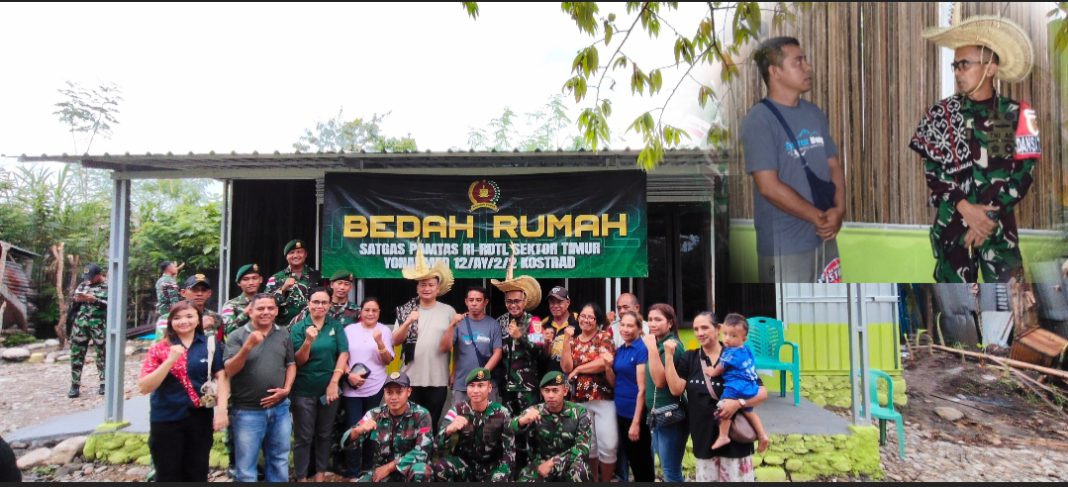 Rumah berukuran 8×6 meter tersebut diserahkan langsung oleh Dansatgas Pamtas RI–RDTL Sektor Timur, Letkol Arm Dr. Erlan Wijatmoko, S.H., M.Han, pada Sabtu (25/04/2026).