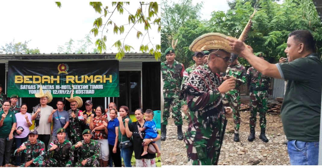 Dansatgas Pamtas RI-RDTL Sektor Timur, Letkol Arm Dr. Erlan Wijatmoko, S.H., M.Han, menyerahkan langsung hunian tersebut sebagai simbol kepedulian TNI terhadap masyarakat di perbatasan tepatnya di Kelurahan Manuaman, Kecamatan Atambua Selatan, saat mereka pada Sabtu (25/04/2026).
